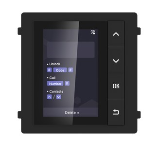 • DISPLAY MODUL • 4 navigacijeske tipke (gore, dolje, OK, natrag) • Podržava do 500 kontakata • Unos i pozivanje brojeva preko modula šifratora (DS-KD-KP) • Otključavanje vrata preko modula šifratora pomoću lozinke